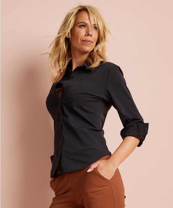Hose für Damen. Die Hose hat einen elastischen Bund. Verziert mit einem gerippten Samtstoff in schlichtem Schwarz. Die Hose hat eine ausgestellte Passform und ist dank ihres geschmeidigen und weichen Stoffes sehr bequem zu tragen.